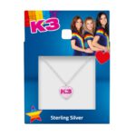 Met het sprankelende hartje en het iconische K3-logo is deze ketting een prachtig cadeautje voor meisjes die dol zijn op K3. Ze combineert glans, vrolijkheid en herkenning, en laat elk meisje haar liefde voor K3 met trots aan de wereld zien.