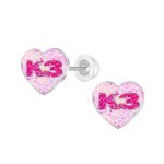 Deze zilveren oorstekers zijn een echte blikvanger voor kleine fans van K3. Het design bestaat uit een roze hartje met glitter, waarin het K3-logo straalt. De oorbellen zijn vrolijk, sprankelend en sluiten perfect aan bij het bekende nummer “Hart verloren”, waarin liefde en plezier centraal staan – een detail dat deze oorstekers extra speciaal maakt voor meisjes die dol zijn op K3.